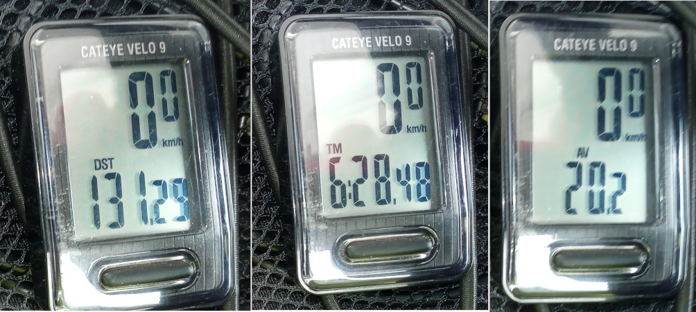 *These shots of my bike computer show that evil Stava underestimates both speed and distance! Unfortunately, I don't have the speedo data for the other days :-(