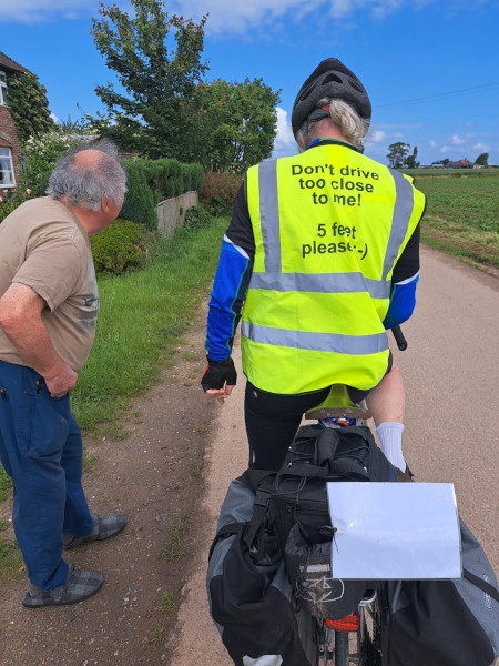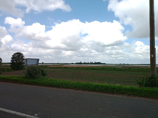 Pedalling off from Anne and Bob's, with potato field stretching away on my right
