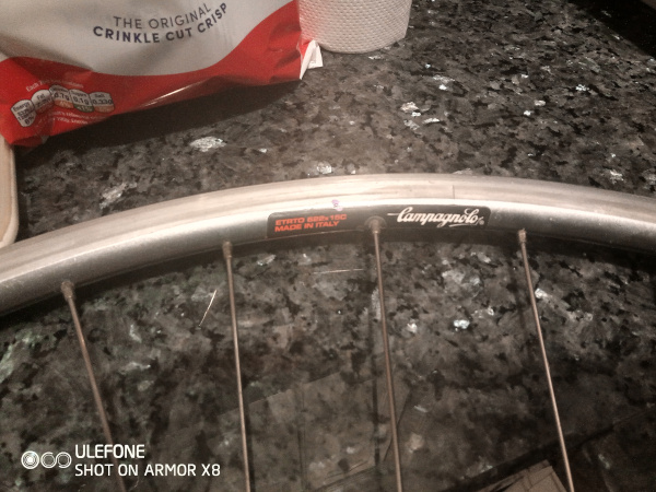 I have built it up with Campag wheels from my late brother Chris - a considerable upgrade on anything I'd have bought!