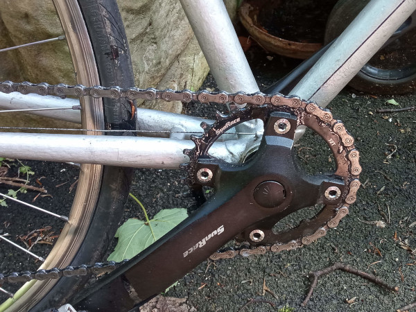 While out riding I noticed a knock/clunk at pedalling frequency. I identified the source - it's the bottom bracket coming loose. I removed the cranks and tightened it up - awkward, as you really need a bottom bracket tool for each side and I only have one! Then I realised that the bearing itself is very rough as you turn the spindle, so I have ordered a replacement - and a second bottom bracket tool.