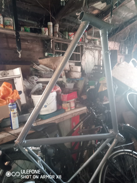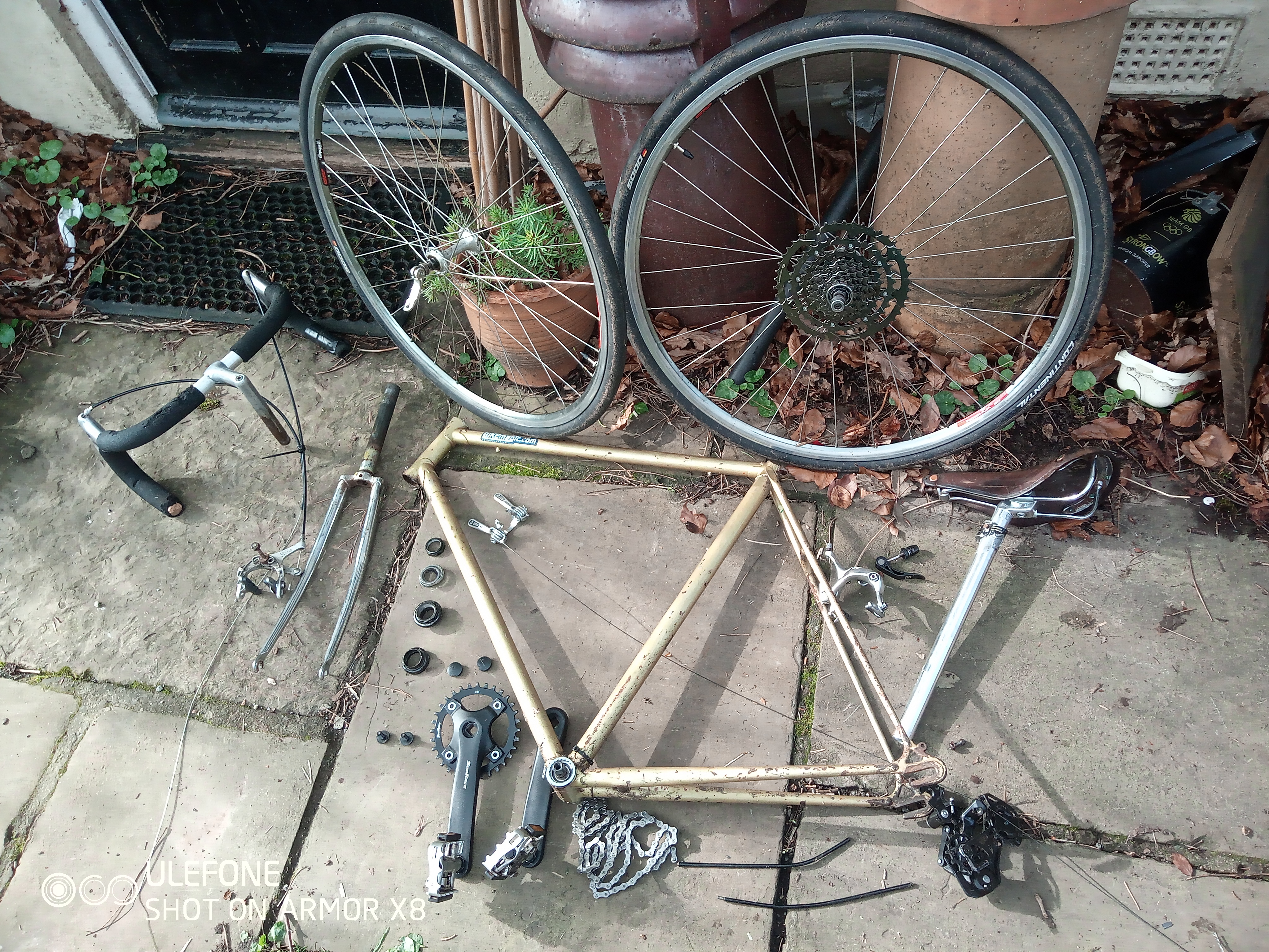 In previous years, I've ridden a road bike (2021), a tandem (2022) and a recumbent trike (2023). This year, I intend to use a bike based on an ancient handbuilt Evelyn Hamilton* frame given to me by Mick O'Meara, a clubmate in Surrey St Christopher's CCC in 1963.