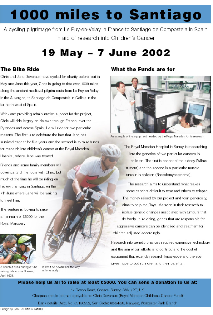 When it was all collected, I raised £1000, split between the two causes – the Royal Marsden Hospital’s child cancer research, (to see Chris's rather nice sponsor appeal sheet, click here ) and the Palestinian Human Rights organization, Al Haq. The amount was much more than I’d anticipated – colleagues and fellow parishioners were very generous. I sent a cheque for £500 to Chris – he far exceeded his £5000 target, reaching £10 000.I met Khader Rantisi, from Al Haq, when he was visiting England in July, so was able to give him the other share of the sponsor money.