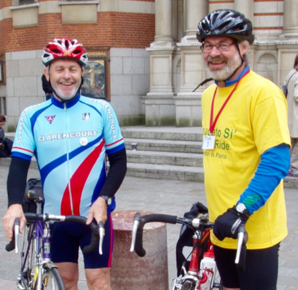 On Good Friday, 10th April 2020, Chris died from Covid 19. We had many happy day rides since 2002; the photo below shows us at the start of Westminster Justice & Peace group's ride to stop the Climate Crisis in 2015.