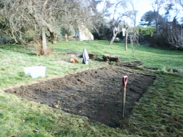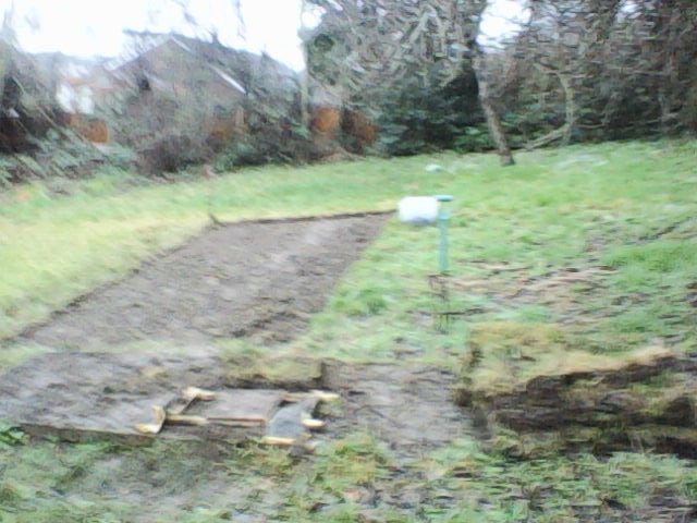 I have been digging up the turf, and moving it up to the little garden just outside the kitchen. Pics below are from 23rd Jan (spot small dog Ben) and today.