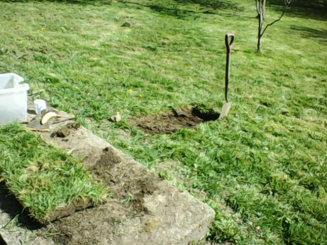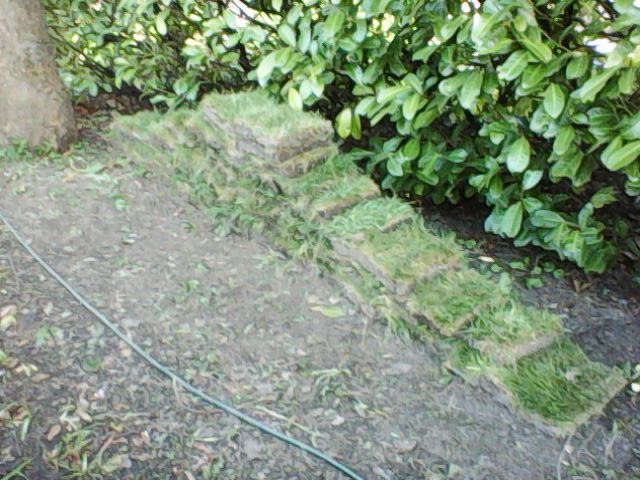 Of course the turf from the second veg patch has to go somewhere - and the top garden, by the road, has been looking pretty bare so that's where it went.